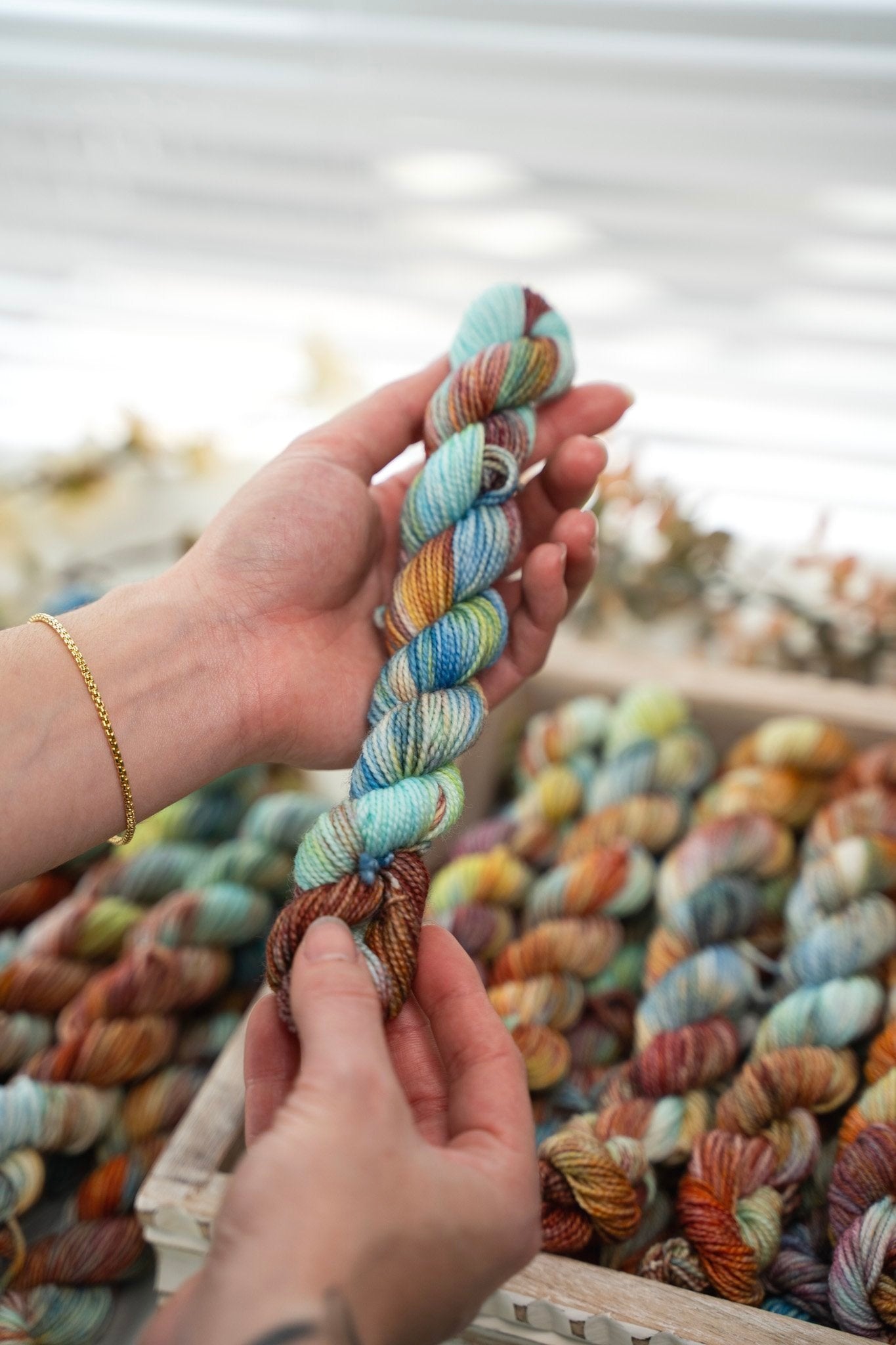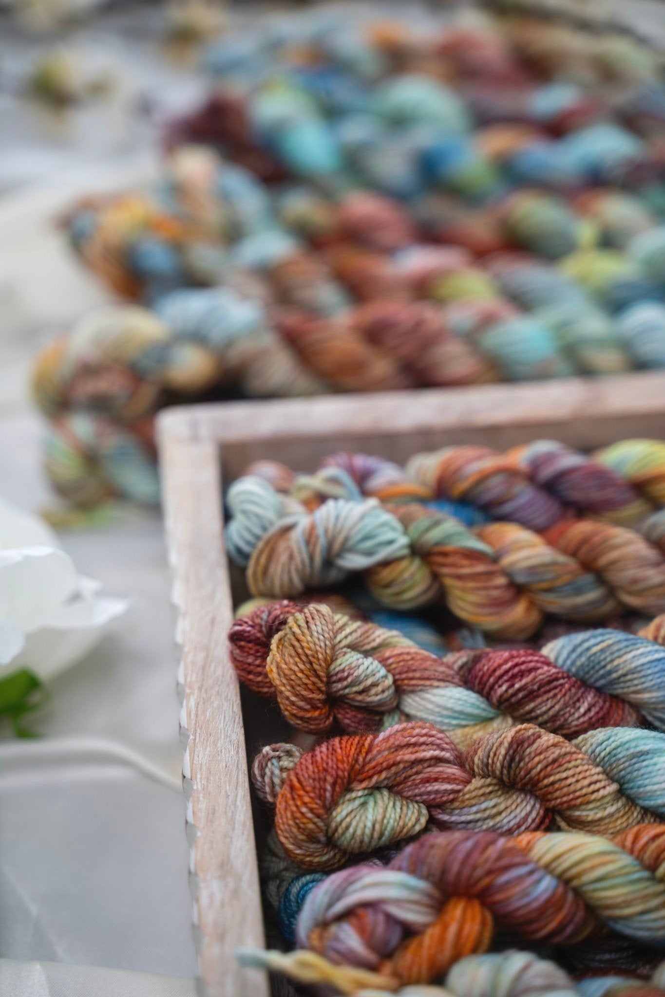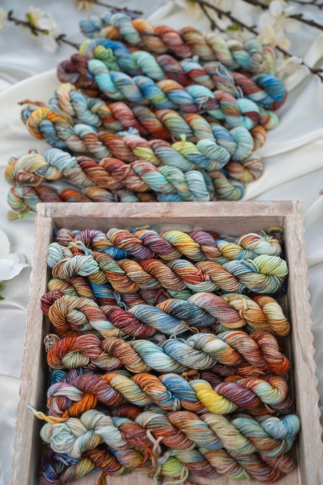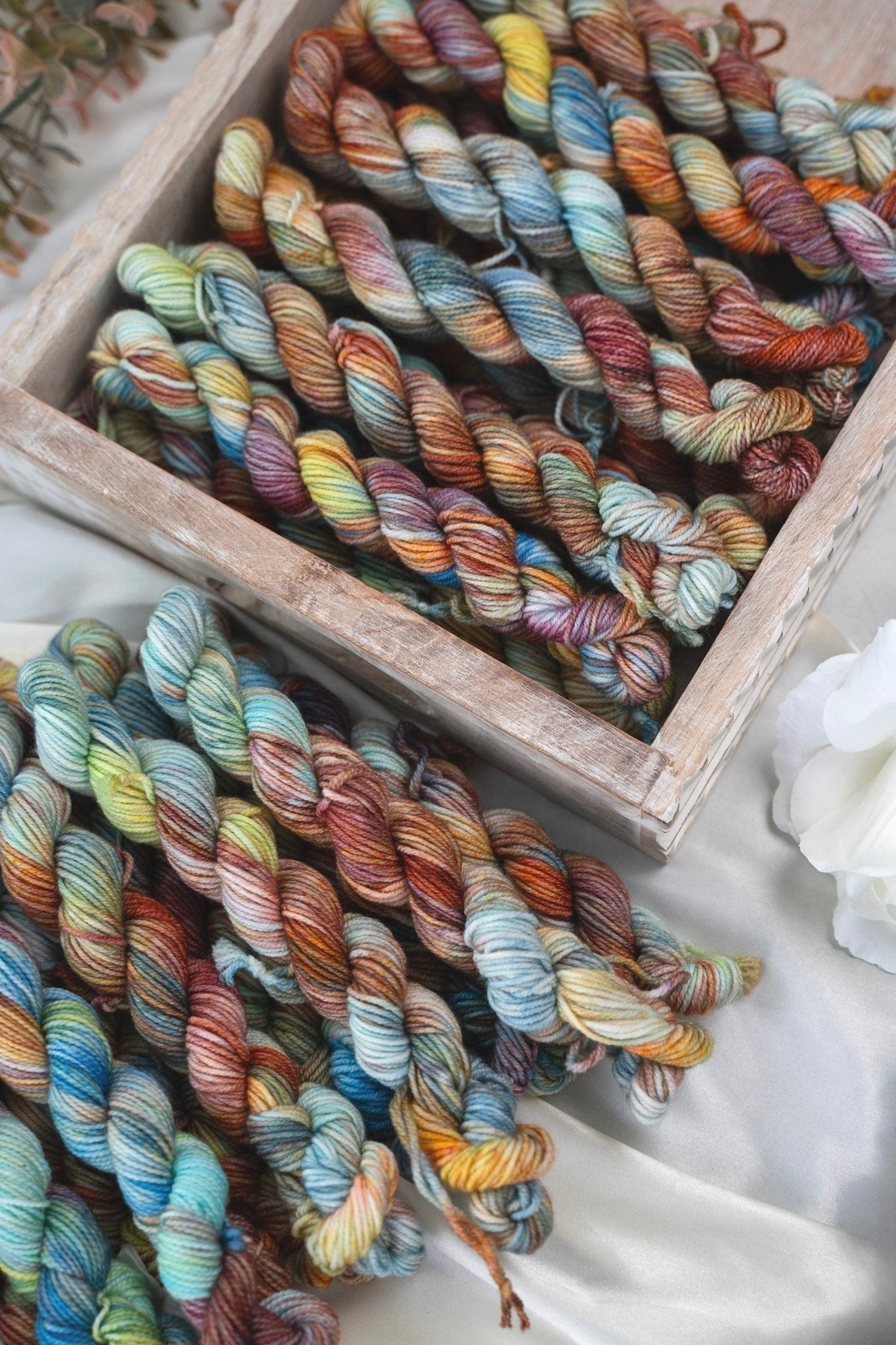 Colorways dyed on the Cotton & Silk bases will be more subdued, retaining less vibrancy than other bases with higher wool content. You can check out the Saturation page for side by side comparisons between bases!