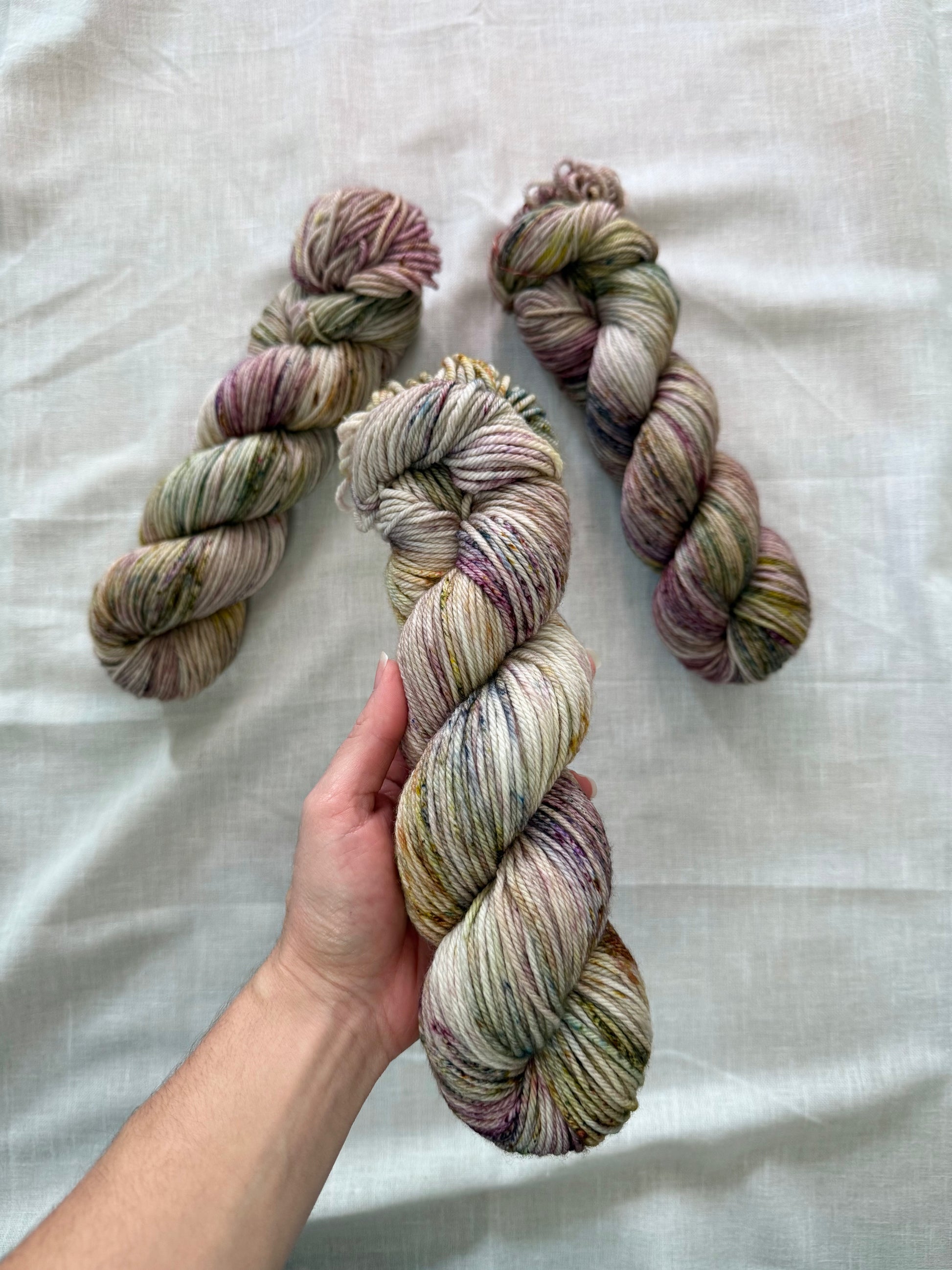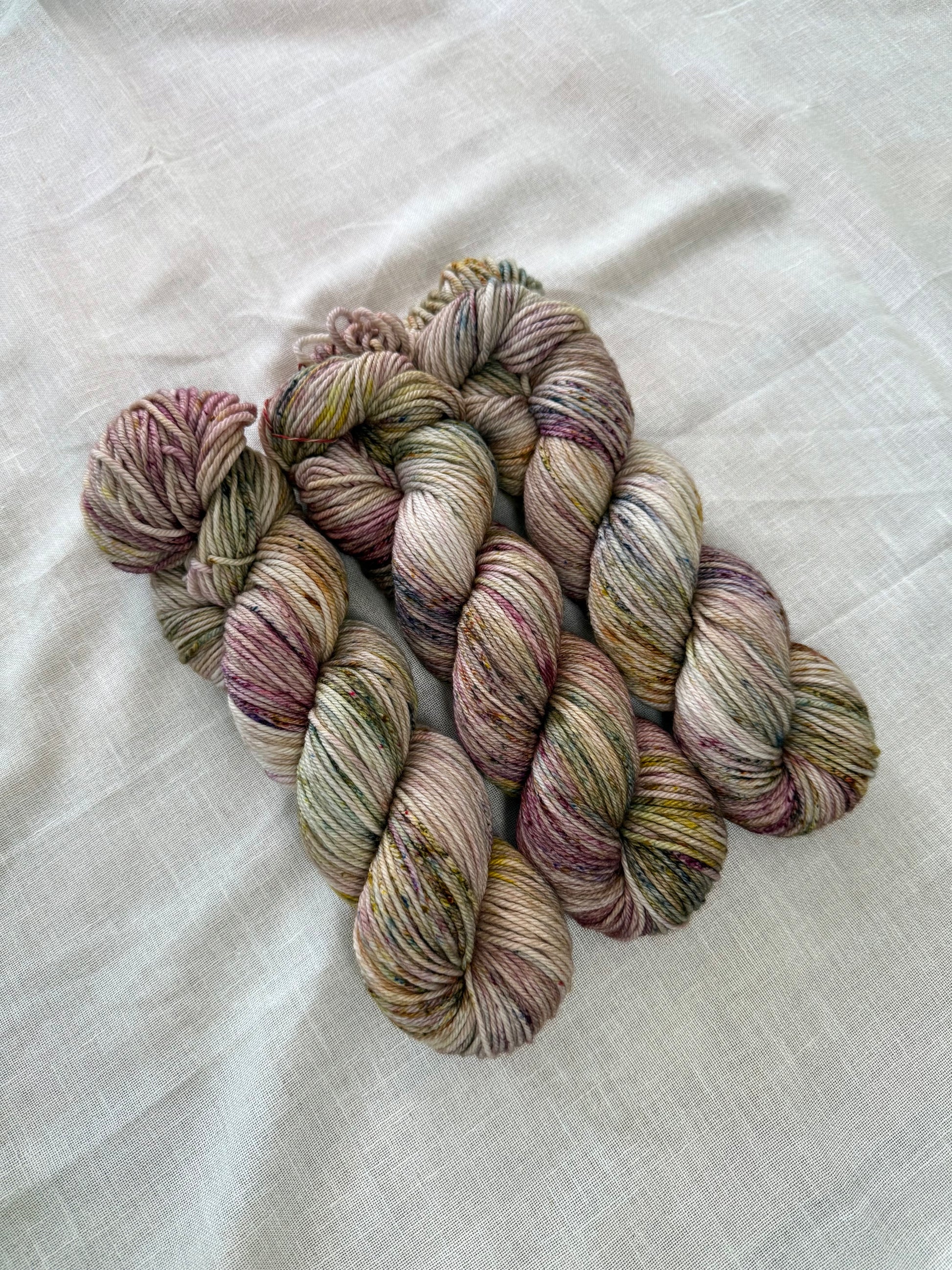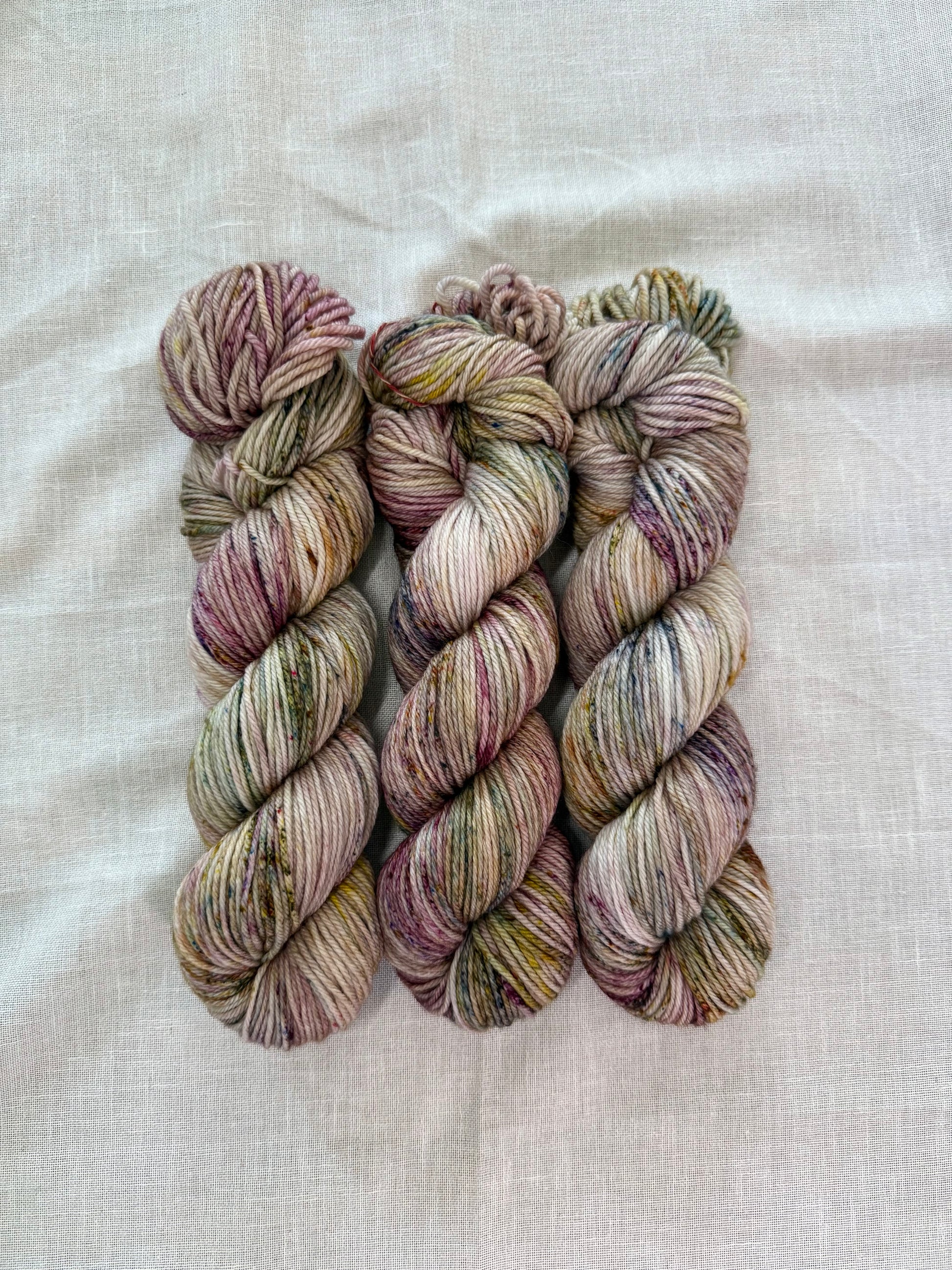 Colorways dyed on the Cotton & Silk bases will be more subdued, retaining less vibrancy than other bases with higher wool content. You can check out the Saturation page for side by side comparisons between bases!