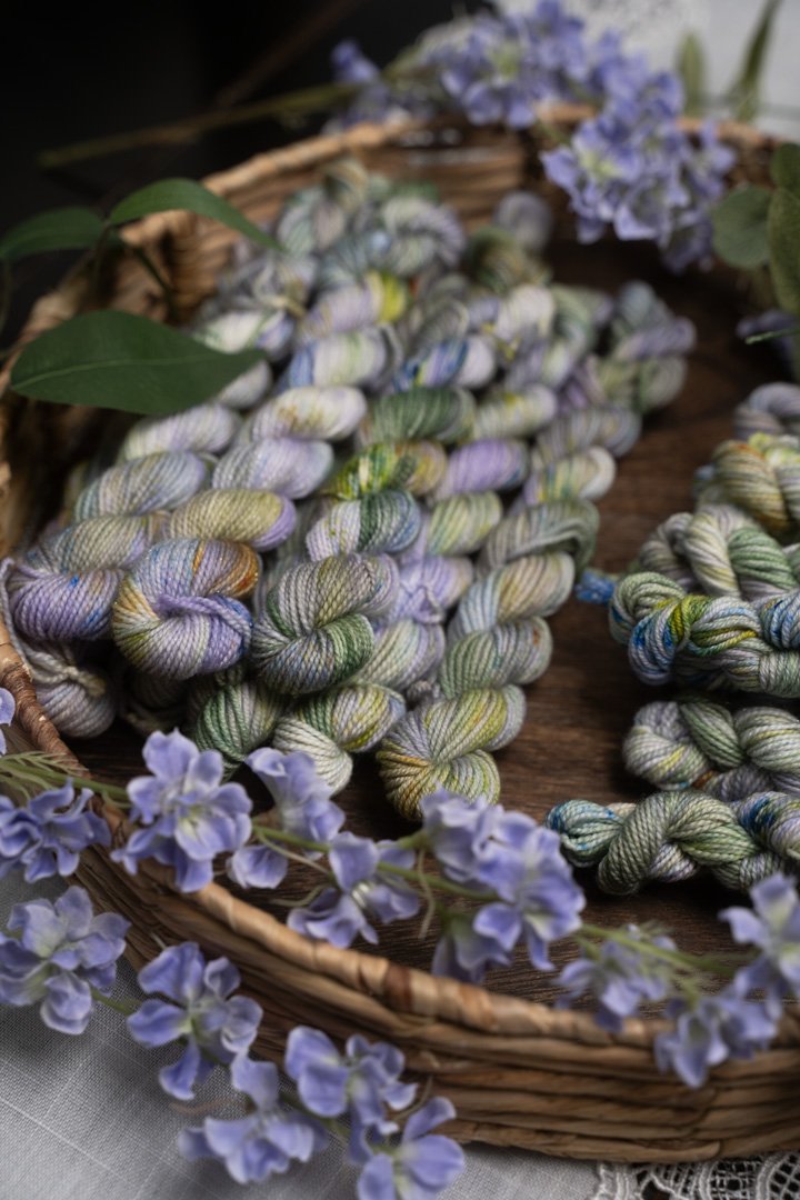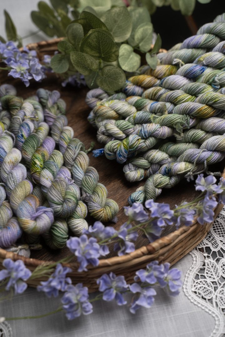 Colorways dyed on the Cotton & Silk bases will be more subdued, retaining less vibrancy than other bases with higher wool content. You can check out the Saturation page for side by side comparisons between bases!