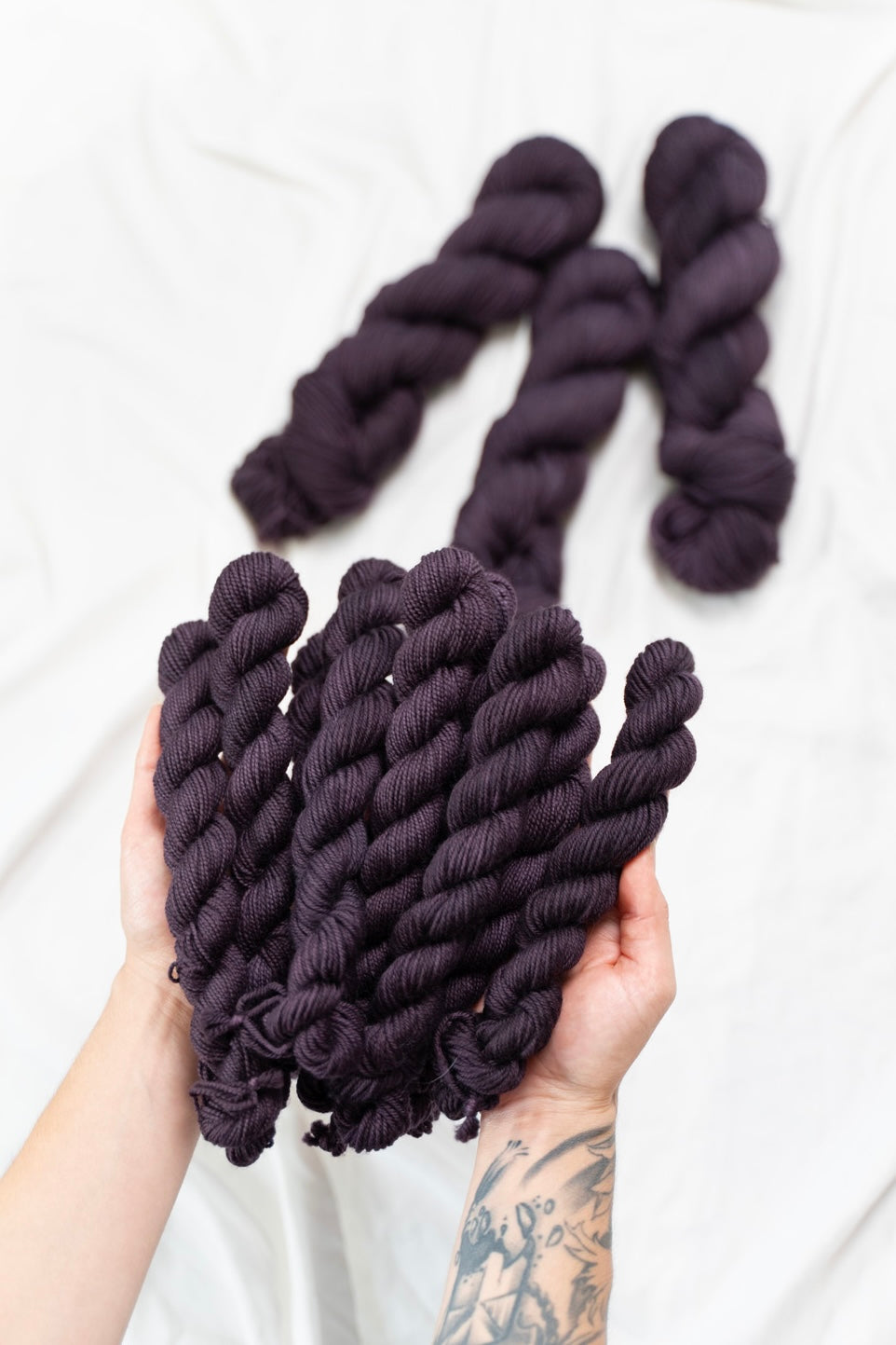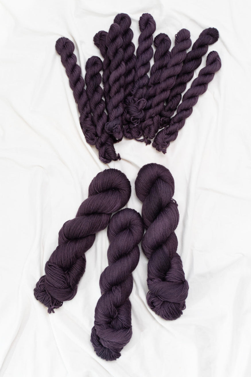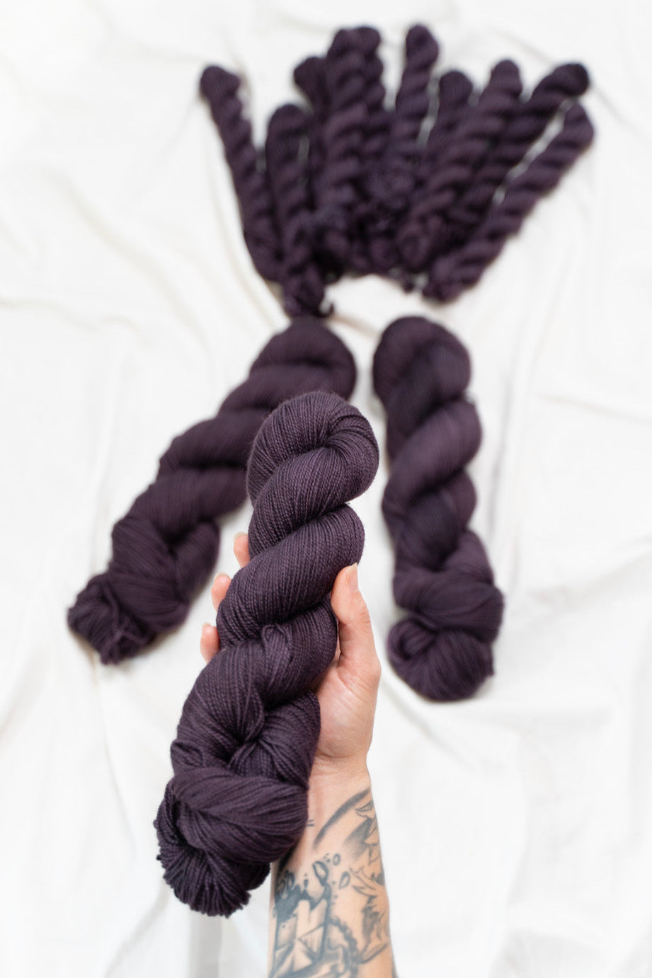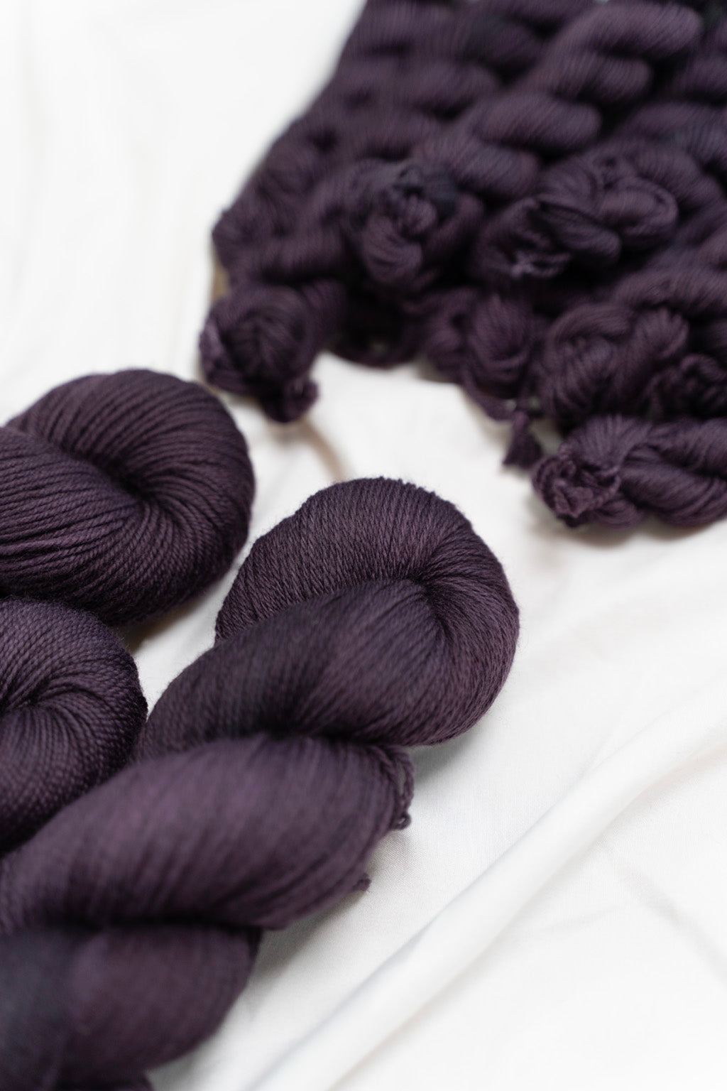 Colorways dyed on the Cotton & Silk bases will be more subdued, retaining less vibrancy than other bases with higher wool content. You can check out the Saturation page for side by side comparisons between bases!