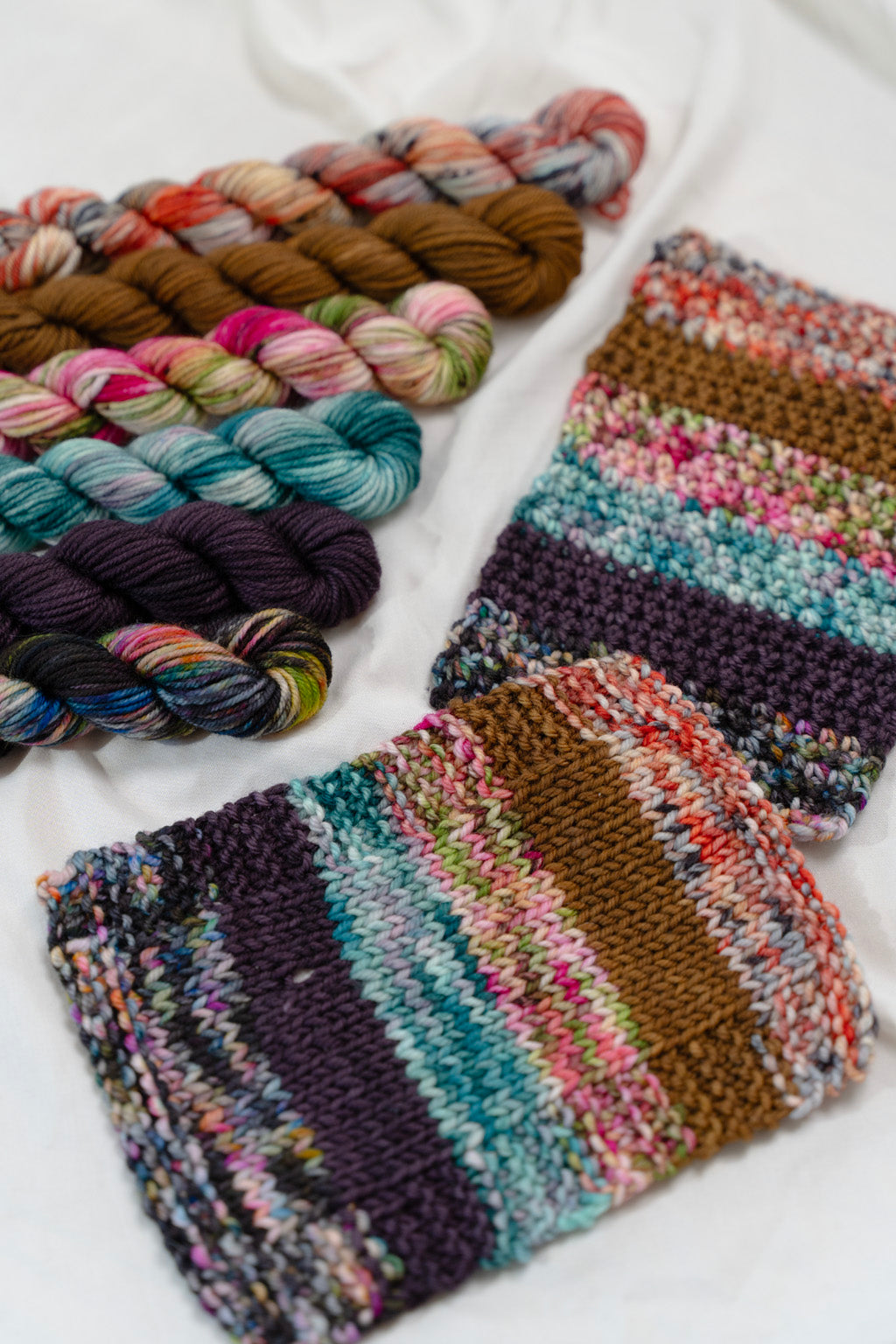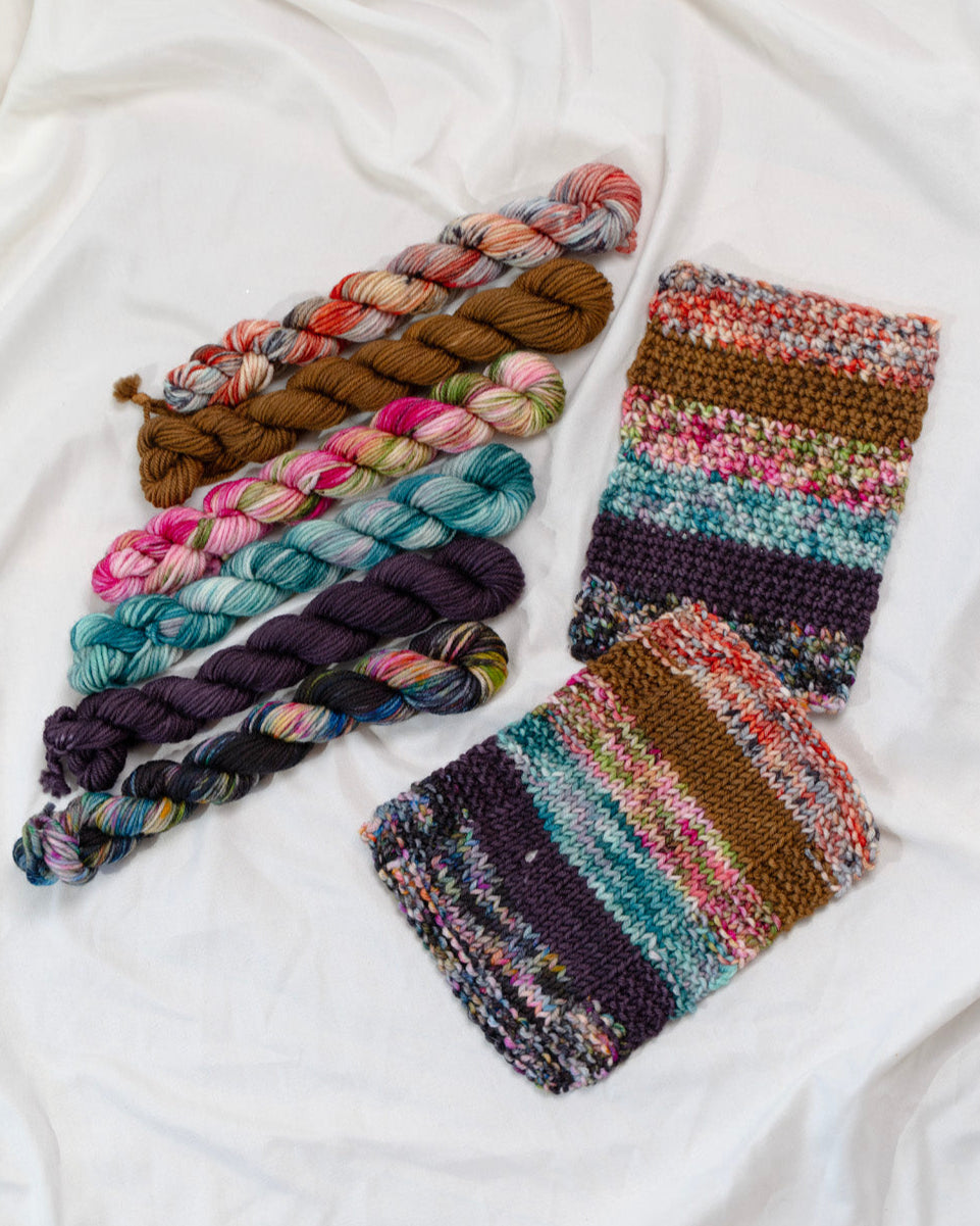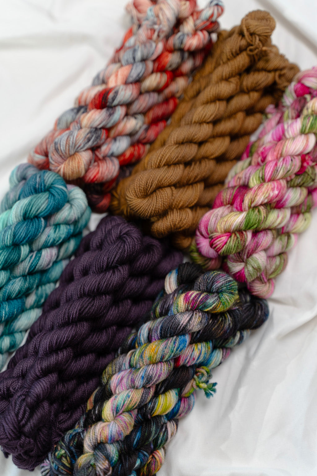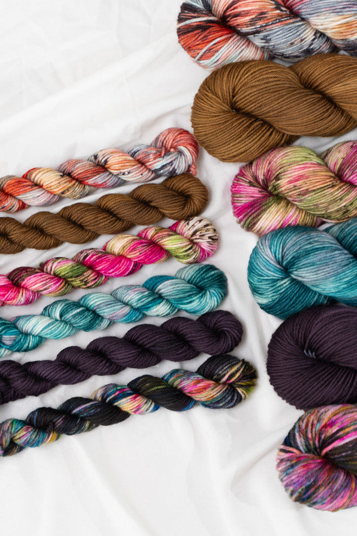Colorways dyed on the Cotton & Silk bases will be more subdued, retaining less vibrancy than other bases with higher wool content. You can check out the Saturation page for side by side comparisons between bases!