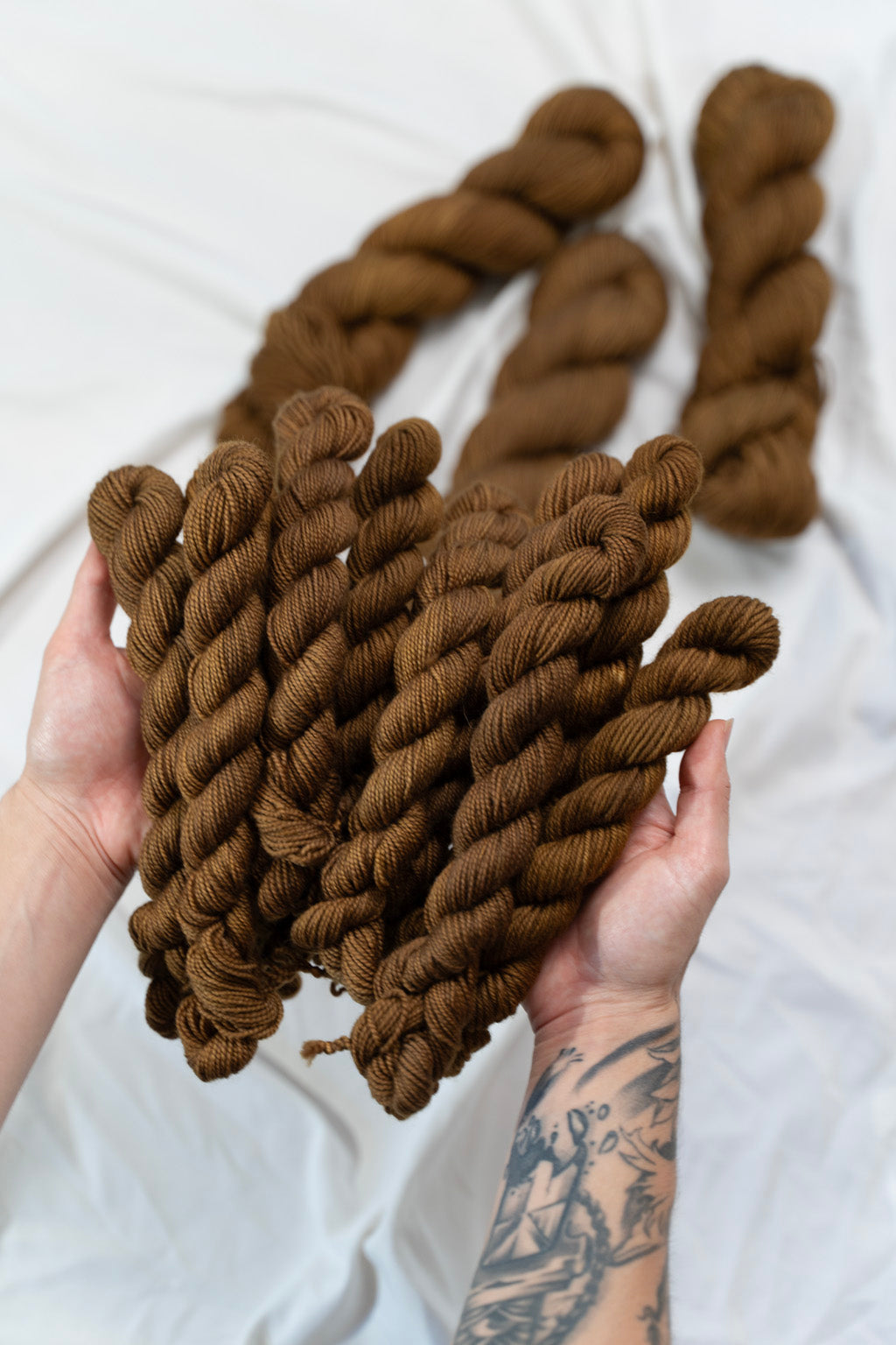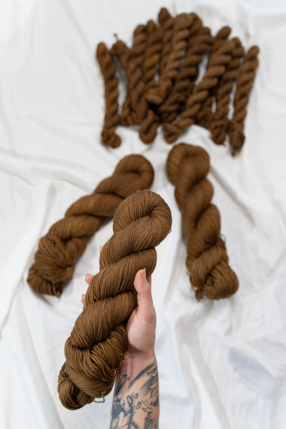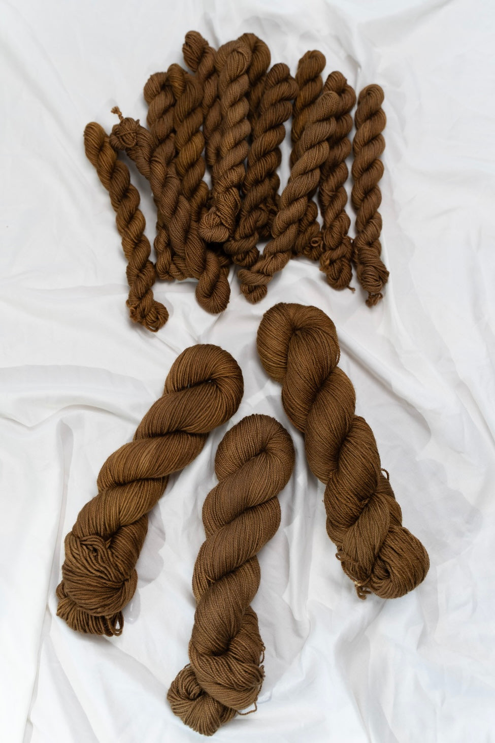 Colorways dyed on the Cotton & Silk bases will be more subdued, retaining less vibrancy than other bases with higher wool content. You can check out the Saturation page for side by side comparisons between bases!