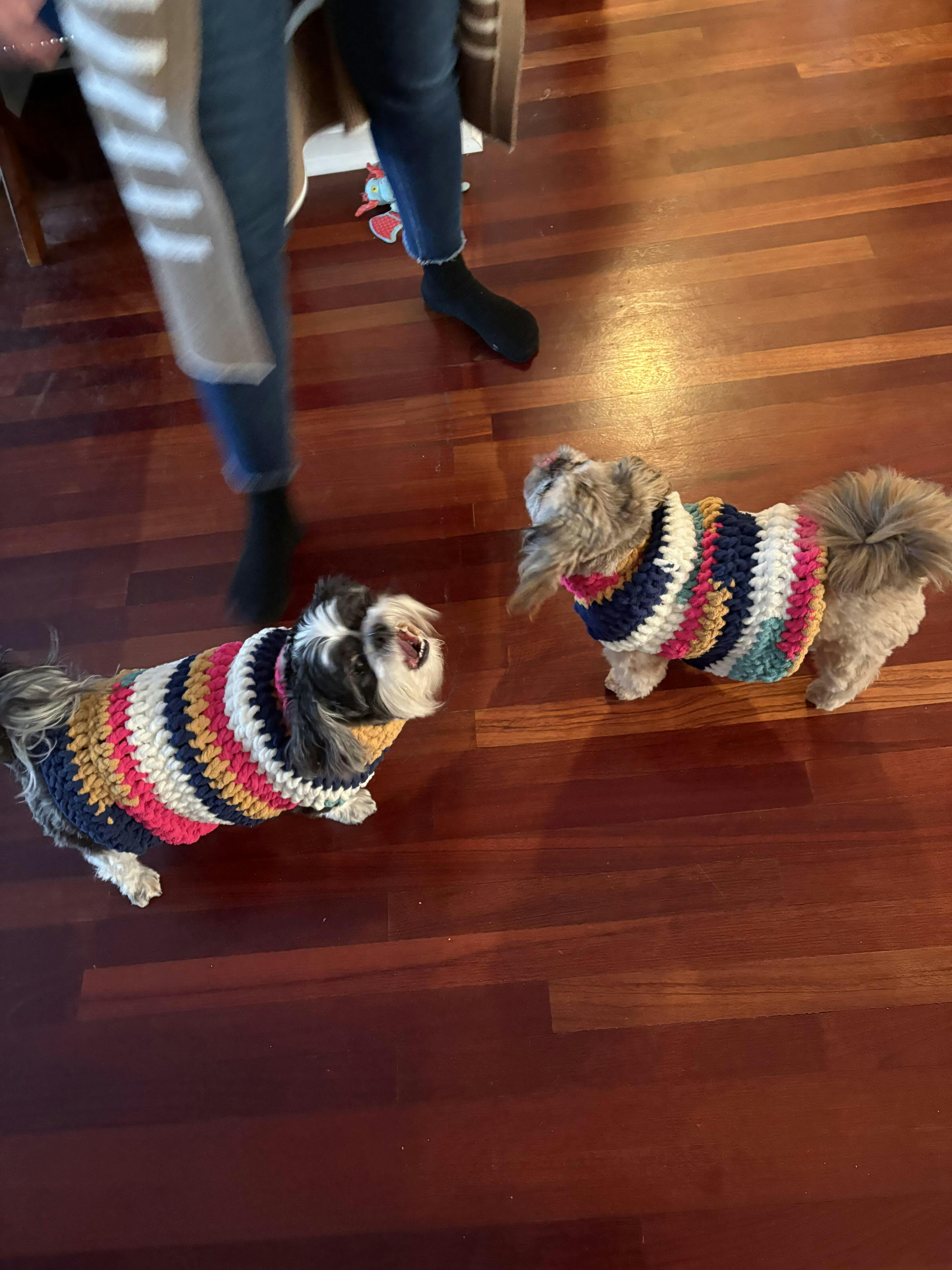 This pet sweater is customizable and can be adjusted to fit your pet’s needs - determine belly coverage as well as the backside length.
